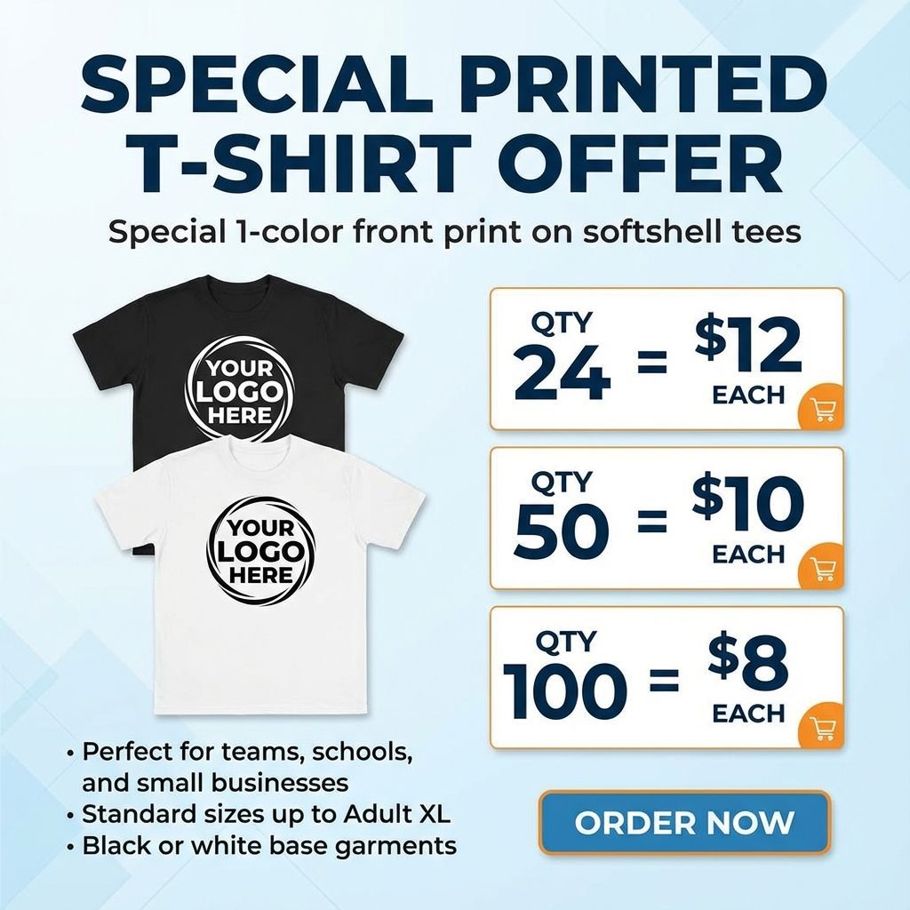 Take advantage of our once-a-year pricing on essential core apparel, high-quality print services, and comprehensive website solutions.