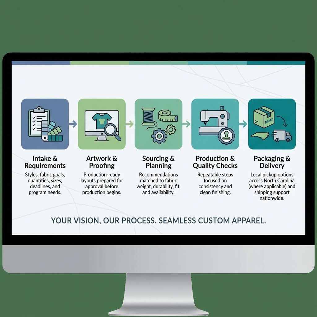 GMB Custom Apparel is a U.S.-based custom apparel manufacturer in Greenville, North Carolina, serving clients statewide across North Carolina and supporting brands and organizations nationwide. The focus stays on clear communication, defined requirements, and consistent production—so premium custom apparel ideas can move from concept to finished product without the overseas headaches.